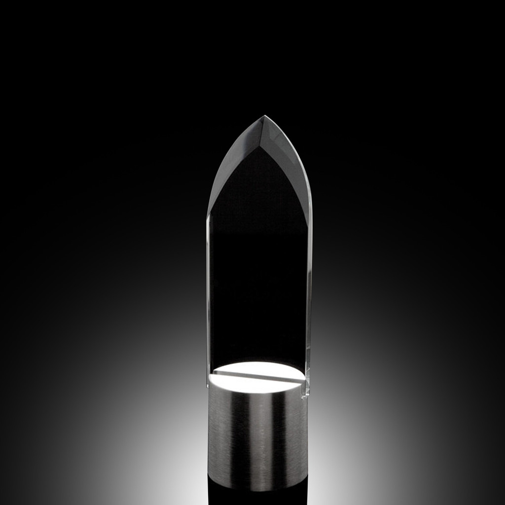 This contemporary recognition award towers in nobility and inspiration! At 10.5" tall, the Aluminum Base Dignity Glass Award features a clear glass wedge with a striking beveled cathedral-style summit that is sure to inspire coworkers to excellence. Adhered to a modern aluminum base, the large glass engraving area provides ample room to get "creative" with personalized artwork, logos, and congratulatory messages. Economically priced and prestigious!