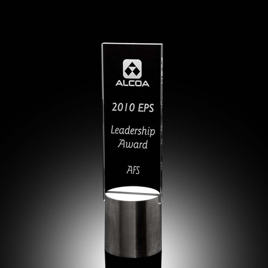 Tall and slender is the new rage in employee appreciation! Standing at 10.5" high, the Aluminum Base Vision Glass Award consists of a towering glass rectangle that is a blank canvas for custom engraved artwork, logos, and messages acknowledging outstanding leadership or years of service. With quantity discount pricing and free personalized engraving, this employee appreciation award is affordable and stunning!