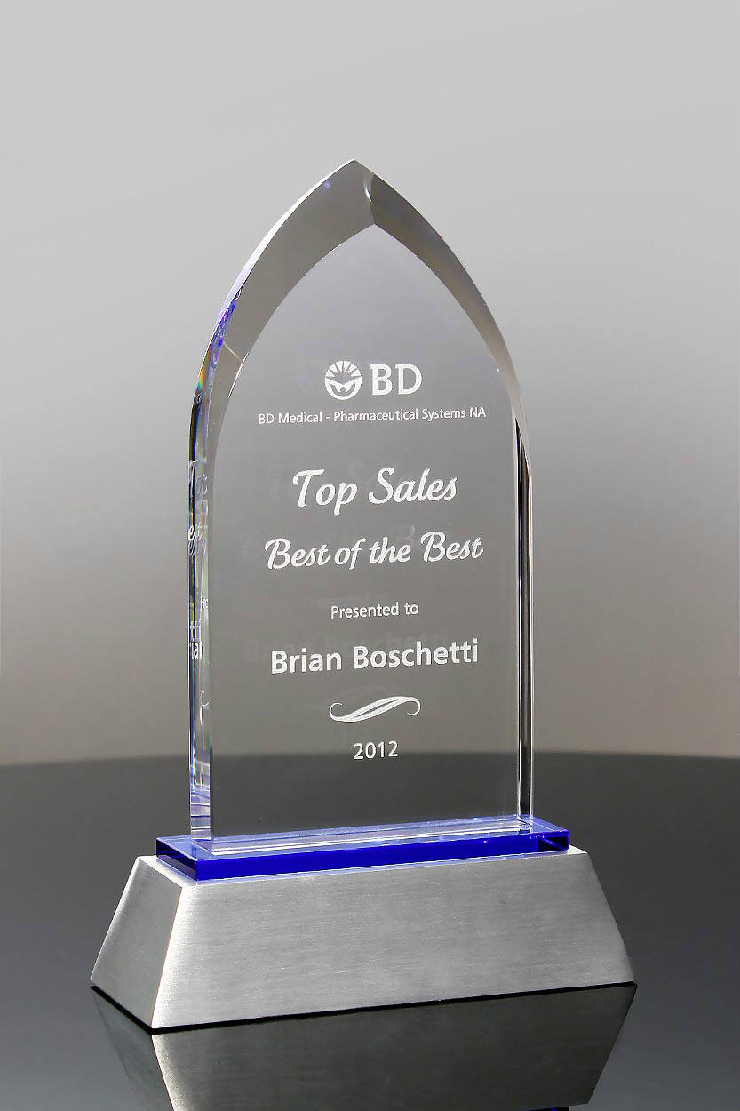 This award is often used for Commemorative Awards, Top Sales Producer, Employee of the Year Award, Volunteer Awards, and Management Awards.