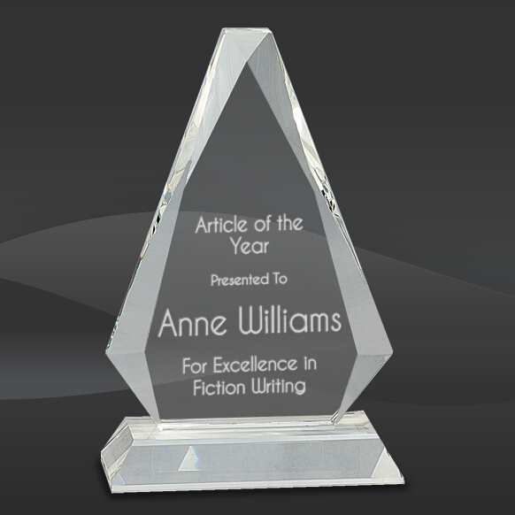 Beveled Flat Triangle Crystal Award (J-CRY67, J-CRY68, J-CRY69) (Sizes: 8", 9", 10" Tall) Description: The Beveled Flat Triangle Crystal Award features a crystal triangle tower piece with flat top. Comes in 3 sizes.