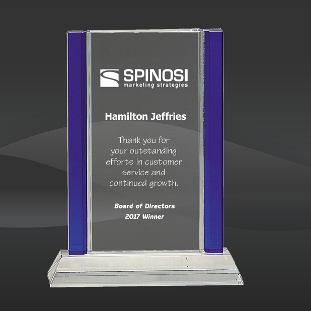 Blue Crystal Road Award (J-CRY241) (Sizes: 8.5" Tall Only) Crystal Info: The Blue Crystal Road Award features unique blue side accents on a clear rectangle crystal piece. Comes packaged in an elegant blue presentation case.