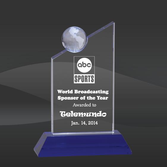 Blue Crystal World Peak Award (J-CRY536) (Sizes: 8" Tall Only) Crystal Info: The Blue Crystal World Peak Award features an optic crystal transcending peak with a world globe on top and mounted onto a blue crystal base. Comes packaged in an elegant blue presentation case.