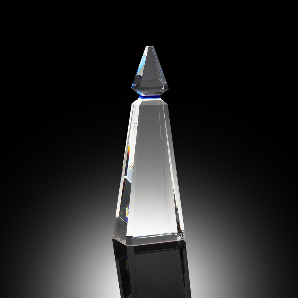 Named after Phineas, a Greek mythology prophet, this towering crystal award is designed for leaders and employees who demonstrate visionary insight to reach their goals. The Blue Pineal Elite Crystal Award is a substantial 2.25" thick and includes a "crowning jewel" at its peak. The ample engraving area in the corporate award provides plenty of space to personalize with logos, artwork, and messages of well-deserved "thanks."