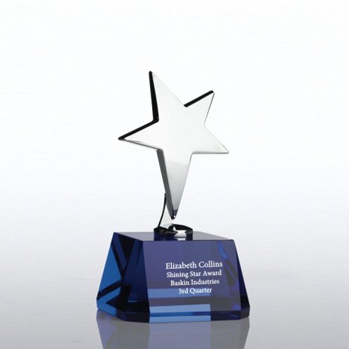 Sitting atop a weighty blue base is an impressive silver star - the perfect statement for awarding stellar performance.