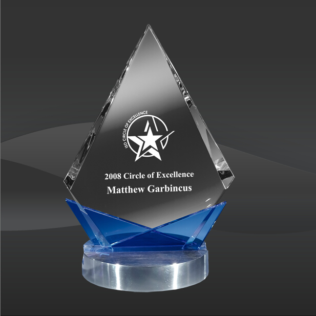 Blue Supreme Crystal Award (MPI-CR-A1067BU-8) (Sizes: 8" Tall Only) MPI Crystal Info: The Blue Supreme Crystal Award features a pointed crystal peak that is decorated with blue crystal pieces on front and back and a detachable brushed silver metal base. Elegant presentation box included.