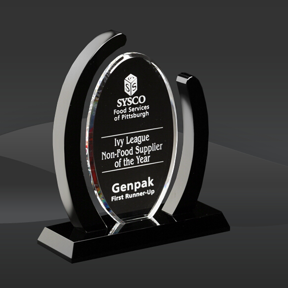 Callaway Crystal Oval Award (CD-6960, CD-6961, CD-6962) (Sizes: 8", 10", 11" Tall) Product Description: The Callaway Crystal Oval Award features black crystal arms reaching around the perfect oval center of optical crystal atop an impressive black crystal base. This award comes in 3 sizes and an elegant presentation box.