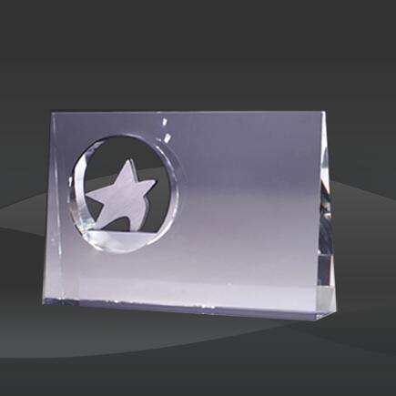 Clear Star Hole Crystal Award (DMC-DCS326) (Sizes: 7" Wide Only) Crystal Info: The Clear Star Hole Crystal Award features a self standing clear crystal rectangle with a cutout circle and metal star inside. Comes with an elegant black presentation case.