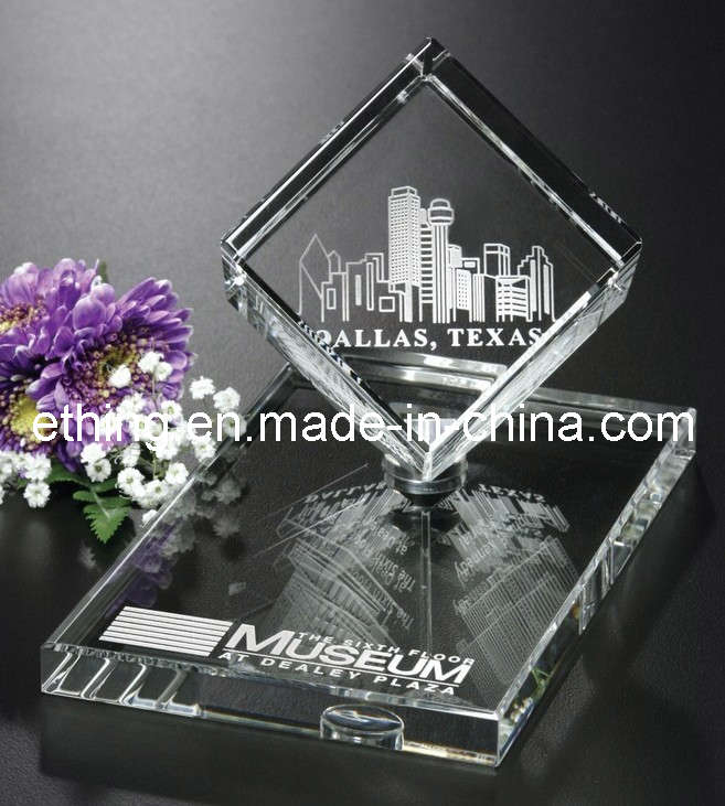 Material: Optical Crystal Packaging: Blue Gift Box Dimensions: Cube: 2-1/2" x 2-1/2"x 2-1/2" Base: 5-3/4"x 3-1/2"