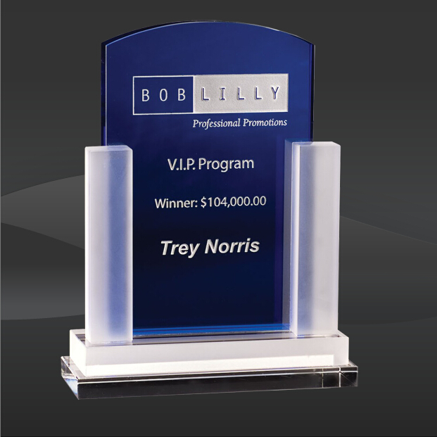 Crystal Blue Reef Award (T-WSRF810) (Sizes: 10" Tall Only) Achievement Awards Crystal Info: The Crystal Blue Reef Award features a blue crystal arch with two frosted crystal side accents in front. Award is mounted onto a frosted and clear crystal base. Comes inside of an elegant presentation case.