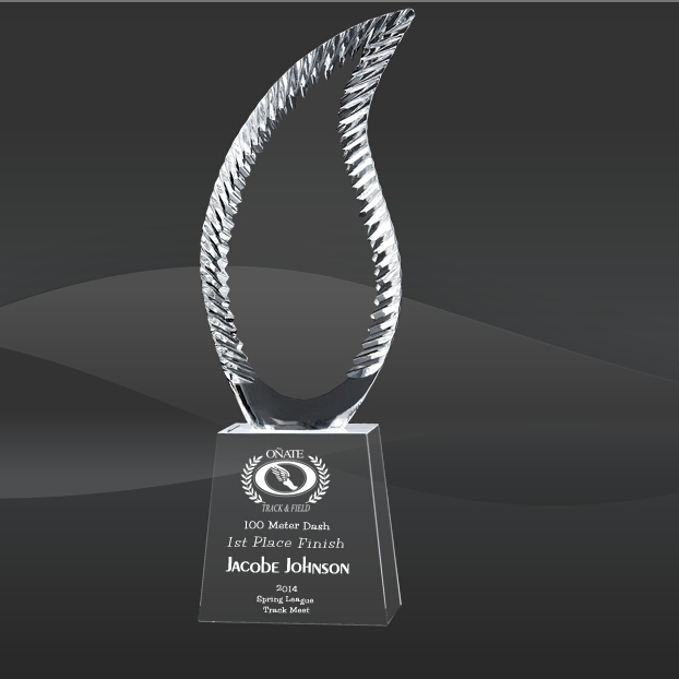 Crystal Iced Harmony Award (CIP-YJ264) (Sizes: 10", 13" Tall) Crystal Description: The Crystal Iced Harmony Award features a chiseled feather or flame crystal piece mounted onto a clear crystal base. This Crystal Award is shipped in an elegant red presentation box.