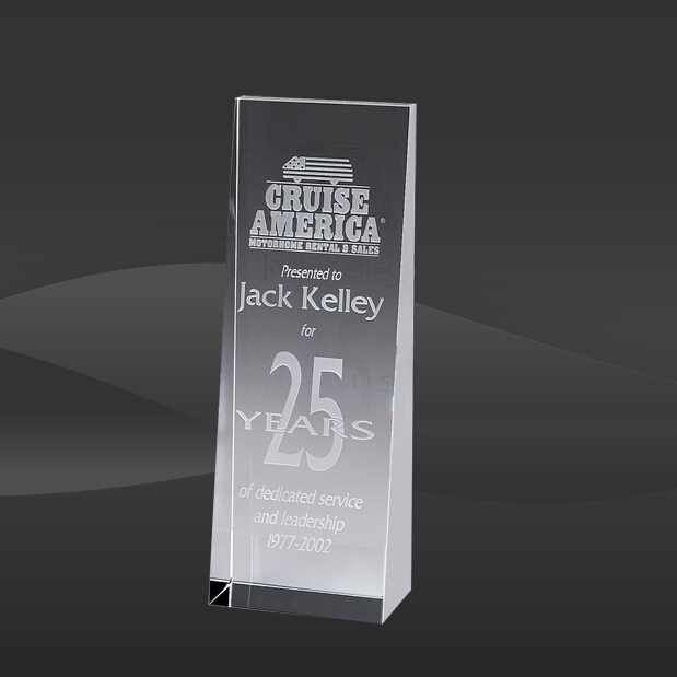 Crystal Tower Plaque Award (CIP-YJ142) (Sizes: 6", 8", 10" Tall) Achievement Awards Crystal Description: The Crystal Tower Plaque features a self standing optical crystal wedged tower. This award is great for Achievement Awards. This Crystal Award is shipped in an elegant red presentation box.