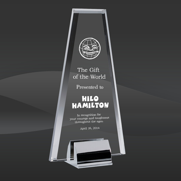 Crystal Uprising Award (CIP-YJ704L) (Sizes: 12.5" Tall Only) Crystal Description: The Crystal Uprising Award features an optical crystal tower mounted in between a chrome plated metal base stand. This award is a great option for any Leadership Awards. This Crystal Award is shipped in an elegant red presentation box.