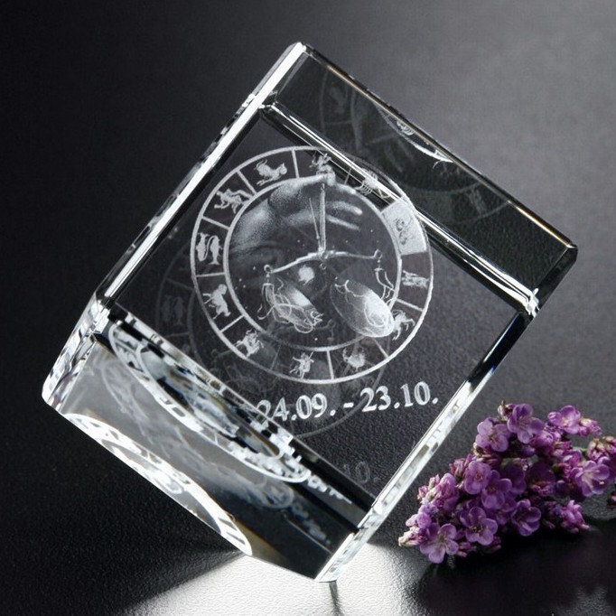 Material: Optical Crystal Packaging: Blue Gift Box Dimensions: 1 1/2" x 1 1/2"x 1 1/2"