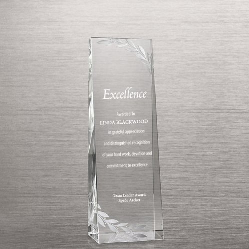 Etched Crystalline Tower Silver Laurels Trophy (#76245)