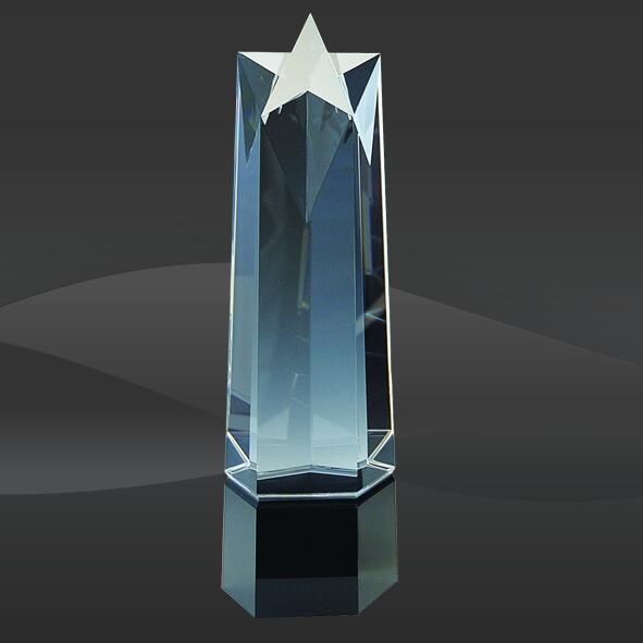 Expanded Galaxy Crystal Star Award (SCT-K5910, SCT-K5912, SCT-K5914) (Sizes: 10", 12", 14" Tall) Crystal Info: The Expanded Galaxy Crystal Star Award features an optic crystal vertical shooting star mounted onto a black crystal base. Comes packaged inside of an elegant presentation case.