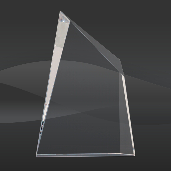 Facet Wedge Peak Crystal Award (J-CRY1452S, J-CRY1452M, J-CRY1452L) (Sizes: 7", 8", 10" Tall) Description: The Facet Wedge Peak Crystal Award features a self standing crystal triangle peak with beveled edges. Comes in 3 sizes.