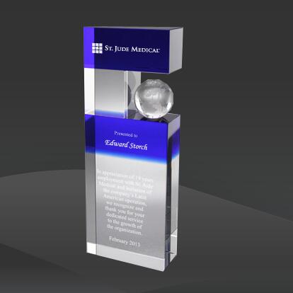 International Globe Crystal Award (MPI-CR-A630WS-9) (Sizes: 9.5" Tall Only) MPI Crystal Info: The International Globe Crystal Award features a unique clear and blue crystal award holding a clear globe in the middle. Elegant presentation box included.