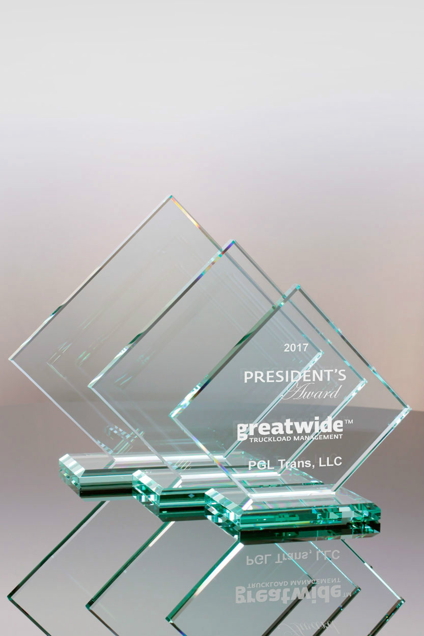 This award is available in three sizes: 6.5", 8.5" and 10" tall. It is a great option for award programs that need several sizes for various levels of achievement. The award can be gold or silver filled as well as engraved on both sides of the glass. Ask your Awards Consultant for details.