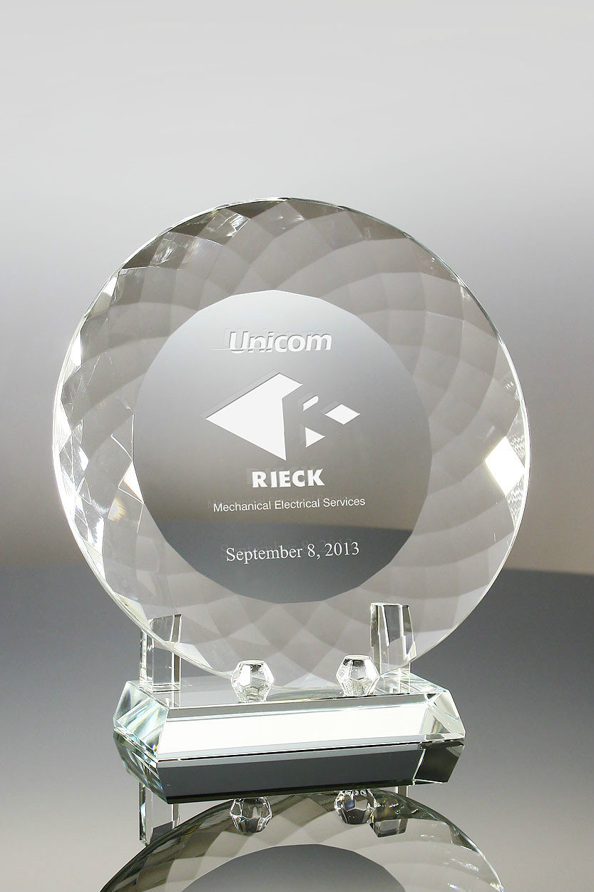 The Crystal Plate with stand is a stunning clear optic crystal award. This is an ideal for a wide variety of appreciation and recognition awards. The beautiful facets of the clear crystal award, captures light from all angles.