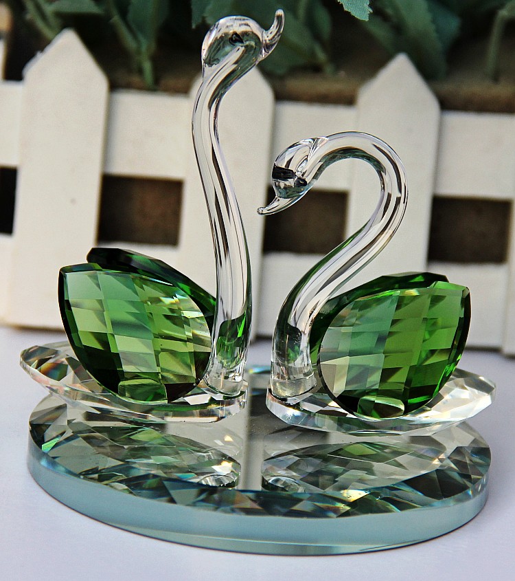 This graceful pair of swans are exquisitely cut from top grade crystal. They are fabulous ornaments for table,living room or office. The pure plumage are created by multiple cut of facets with great skills. What a romantic swan figurine! It stands for a long lasting love as swans are well known for their faith and loyalty for love and they love only one partner for life. This graceful swan figurine crystal ornaments made great wedding gifts for new couples.