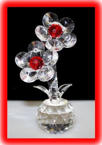 Twin Crystal Flower Ornament 100 x 60 mm (Red)