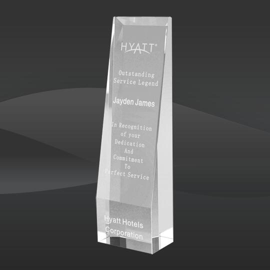 Vertical Slant Crystal Award (DMC-SCA214, DMC-SCA215, DMC-SCA216) (Sizes: 6", 8", 10" Tall) Crystal Info: The Vertical Slant Crystal Award features a clear crystal wedge with sharp downward slant that creates a flat area for etching. Comes in 3 sizes with an elegant black presentation case.