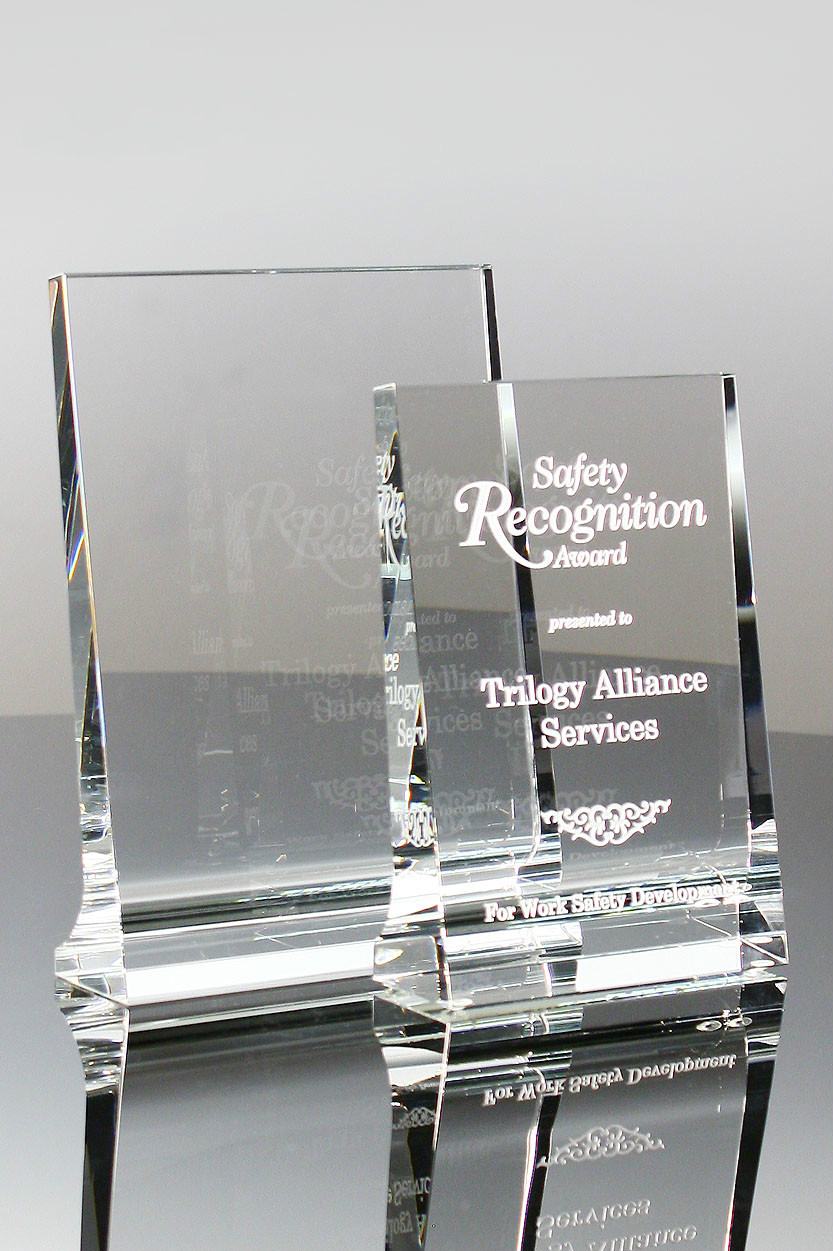 The Crystal V Tablet Awards are really stunning clear optic crystal awards. Available in two sizes, they offer a great option when you need multiple sizes of an award for your event or program. The V Tablet Awards slant slightly backward, making it extremely easy to read the text on these awards. The crystal is thicker at the bottom of the award, and thinner toward the top of the award, creating a very classic and elegant look.