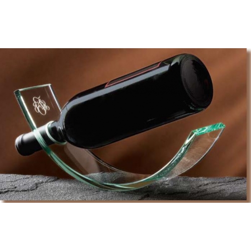 That bottle in your cupboard is jealous of what it could be in this sleek bottle holder. The curved glass is eye catching, and the feat of balance adds to the allure. Imagine your favorite vino floating above your counter top in this personalized holder. Dinner guests will turn their heads, and you will continue to impress!.
