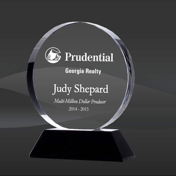 Winners Circle Crystal Award (TM-C922) (Sizes: 7.25" Tall Only) Crystal Info: The Winners Circle Crystal Award features a round crystal circle, mounted on a black crystal base. Comes packaged inside of an elegant presentation case.