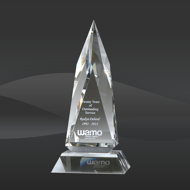 Zenith Arrowhead Crystal Award (CBD-OC2485, CBD-OC2410, CBD-OC24115) (Sizes: 8", 10", 11" Tall) Crystal Info: The Zenith Arrowhead Crystal Award features a chilised arrowhead crystal peak, mounted onto a clear crystal base.